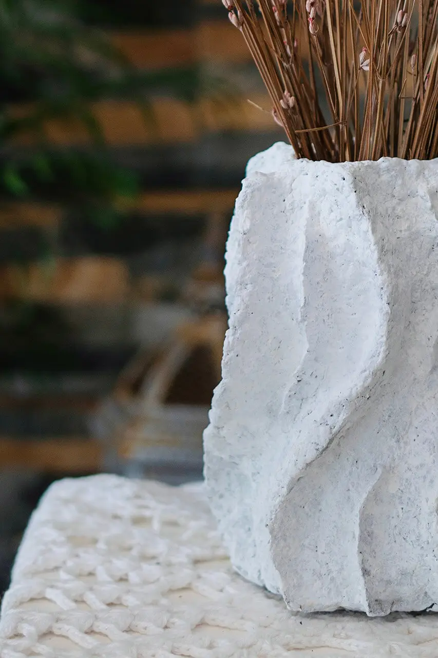 Jarrón Marea. “Un vaivén eterno convertido en cerámica. Sus formas onduladas evocan el abrazo constante de las olas.”